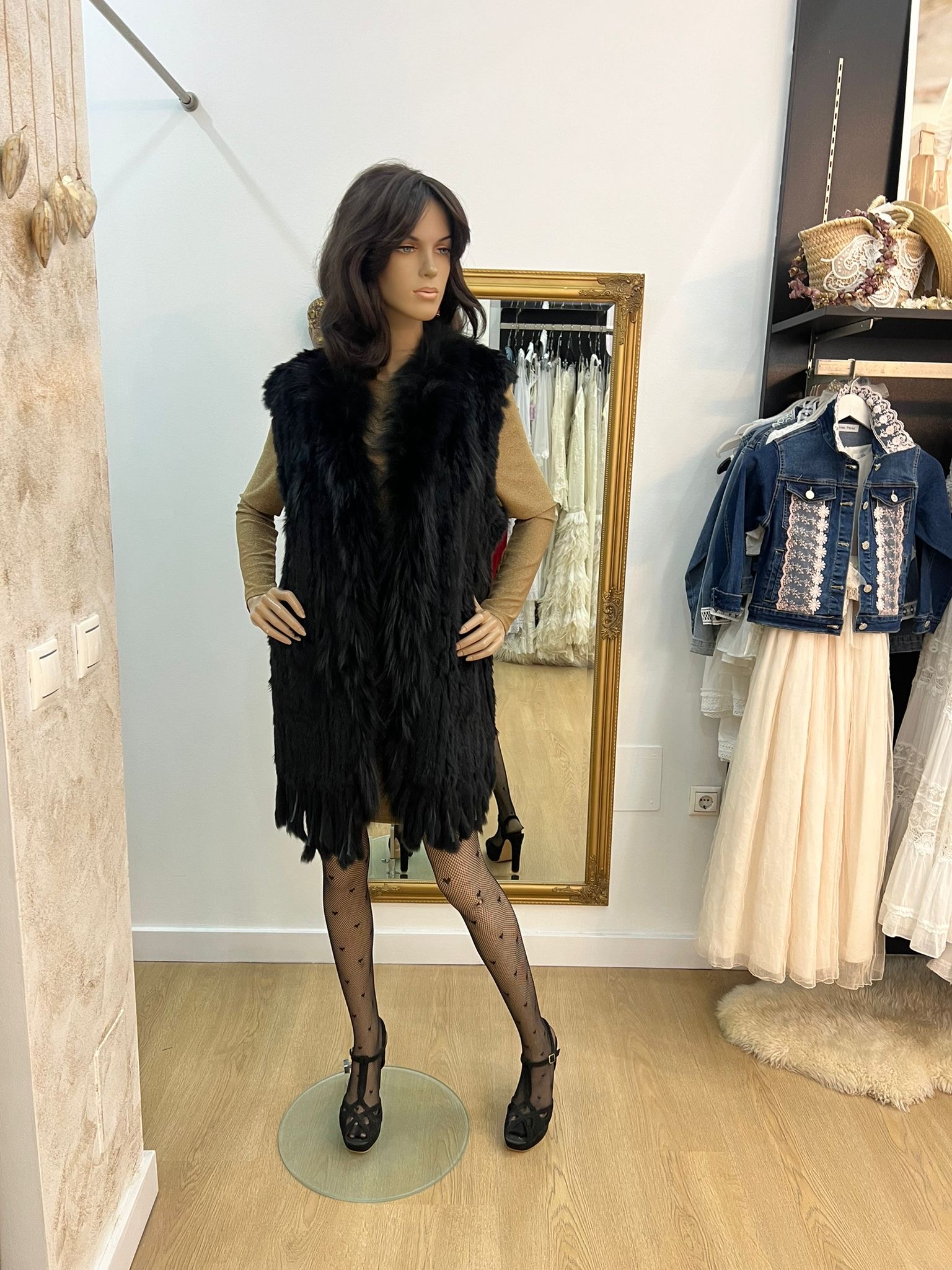 Chaleco largo trenzado negro