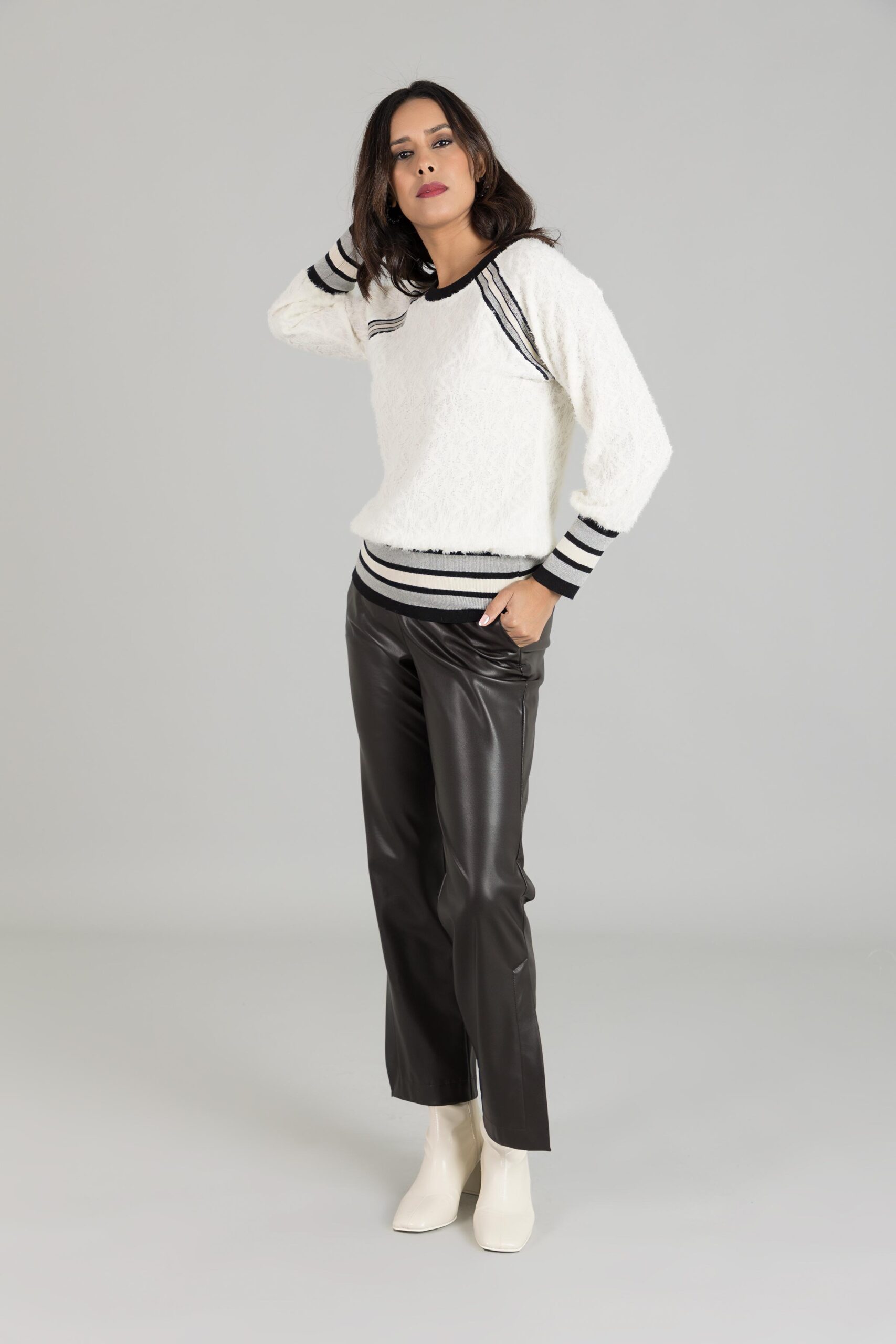 Pantalón ecopiel marrón chocolate y negro talla grande