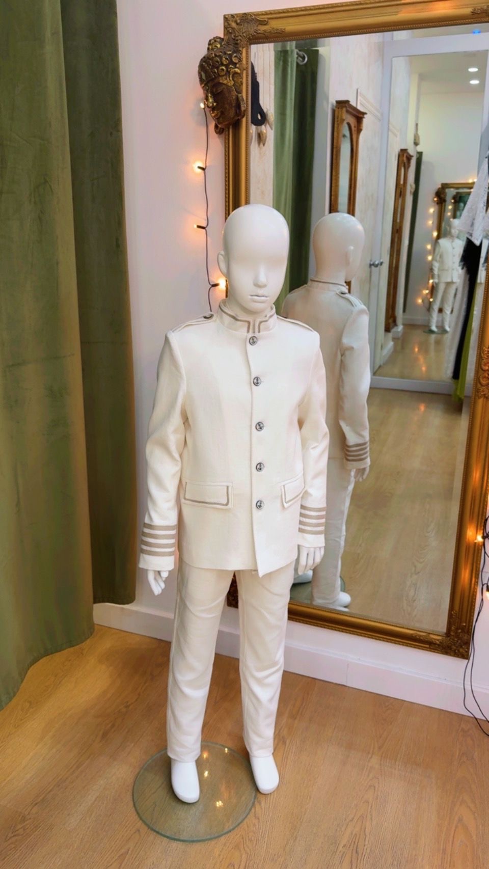 Traje de comunión blanco de lino con casaca