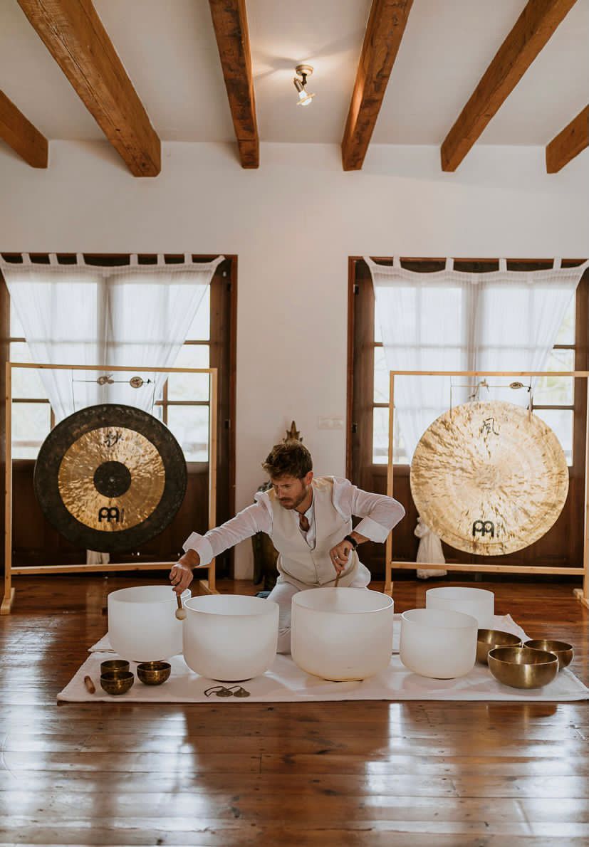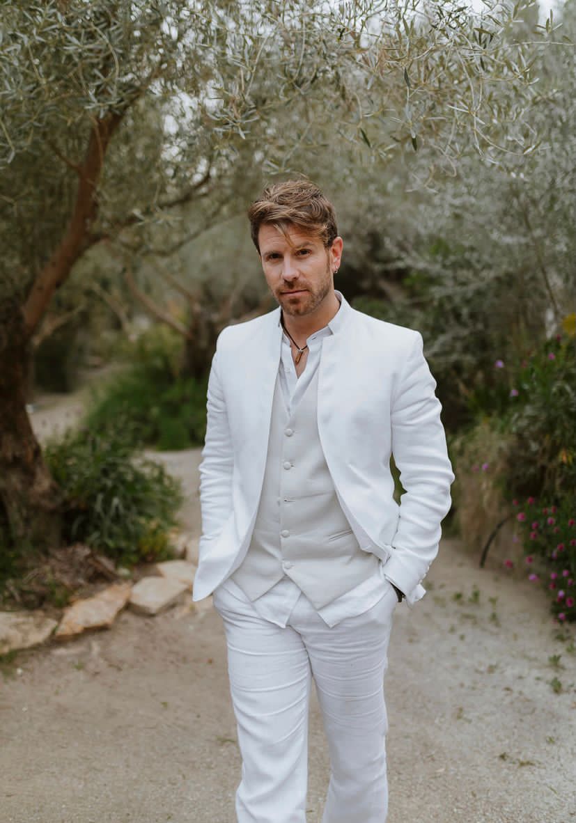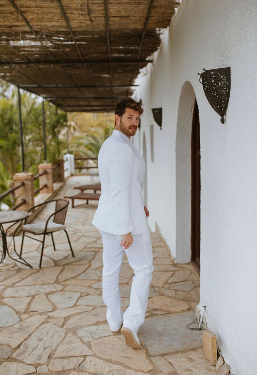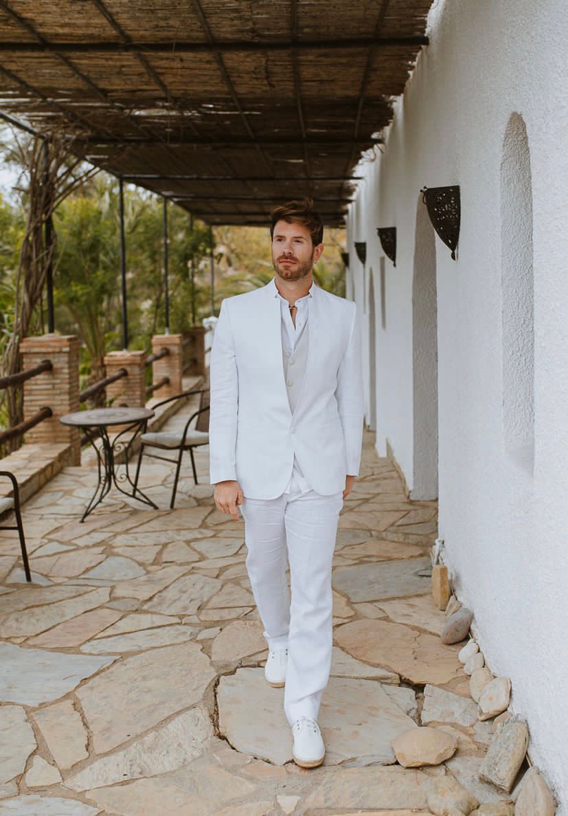 Traje de lino ibicenco cuello mao blanco