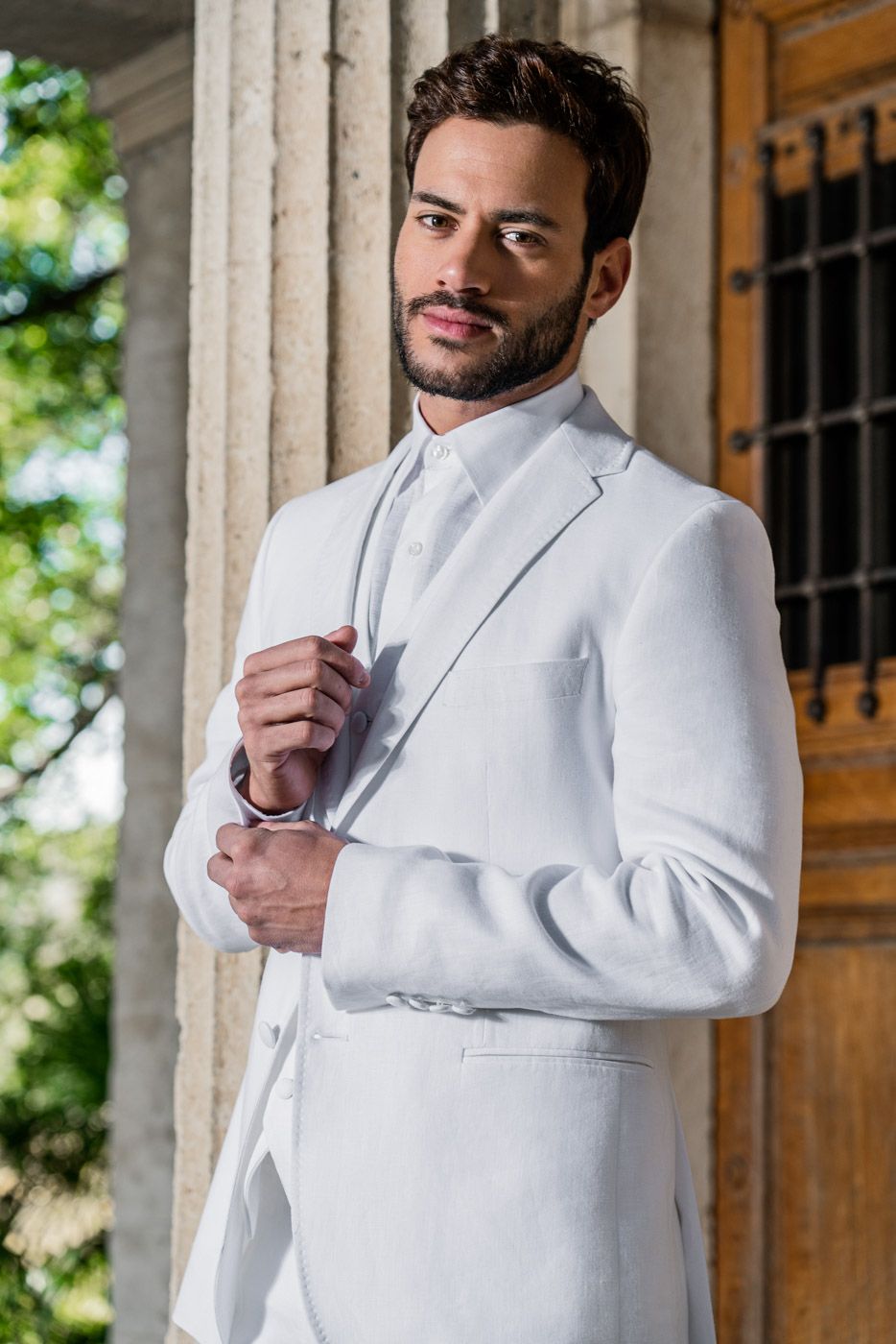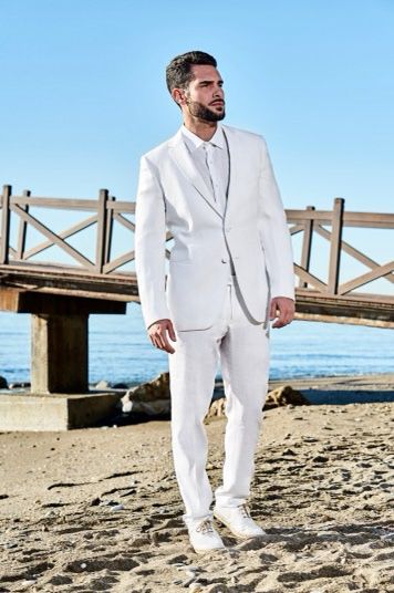 Traje de lino blanco ibicenco cuello solapa