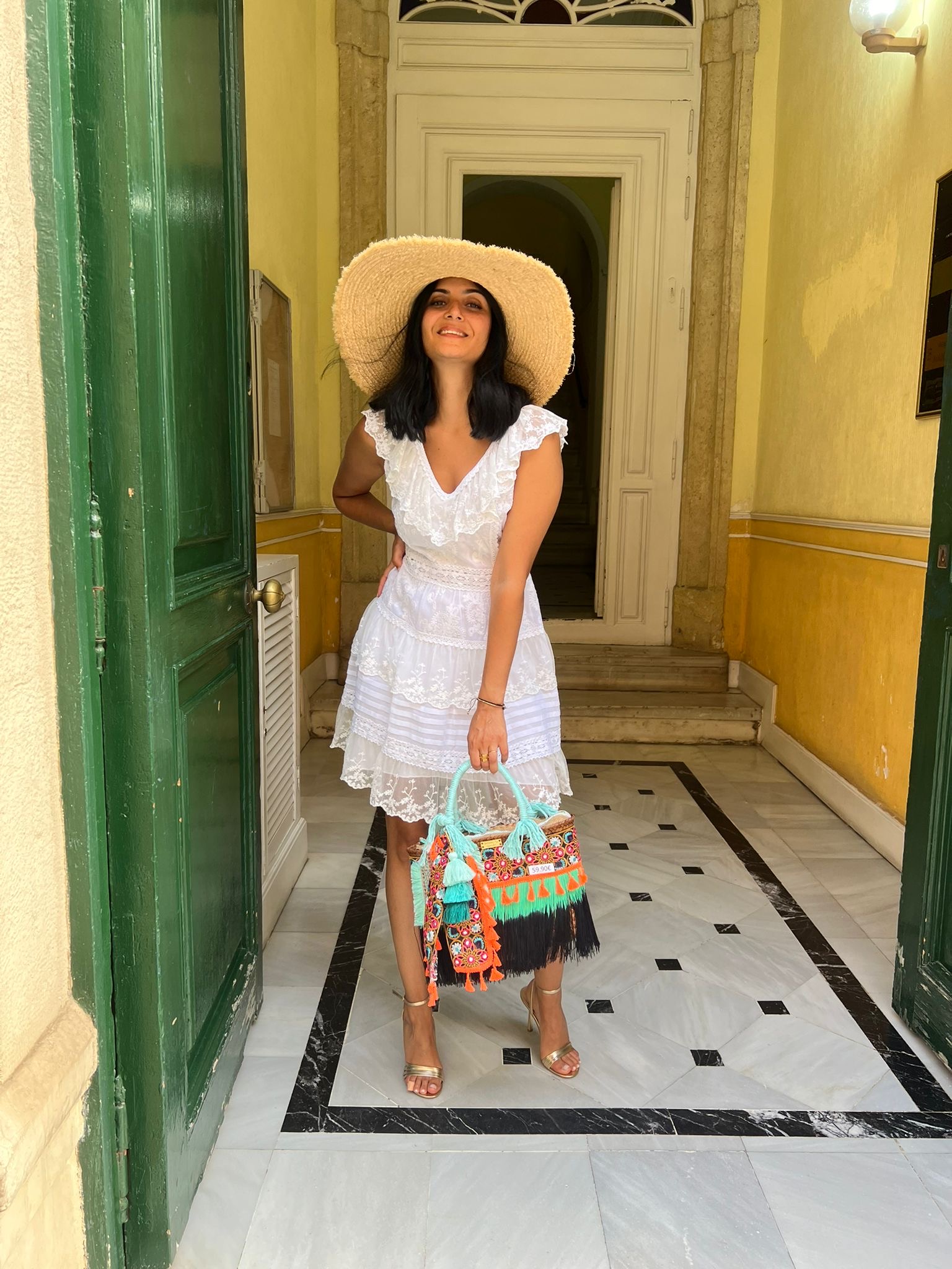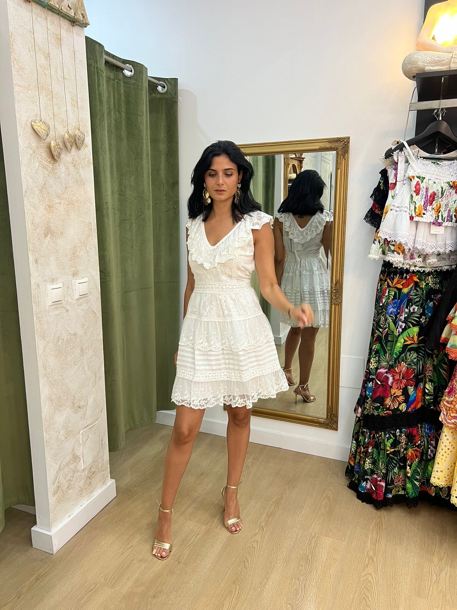 Vestido ibicenco blanco corto con volante Isla